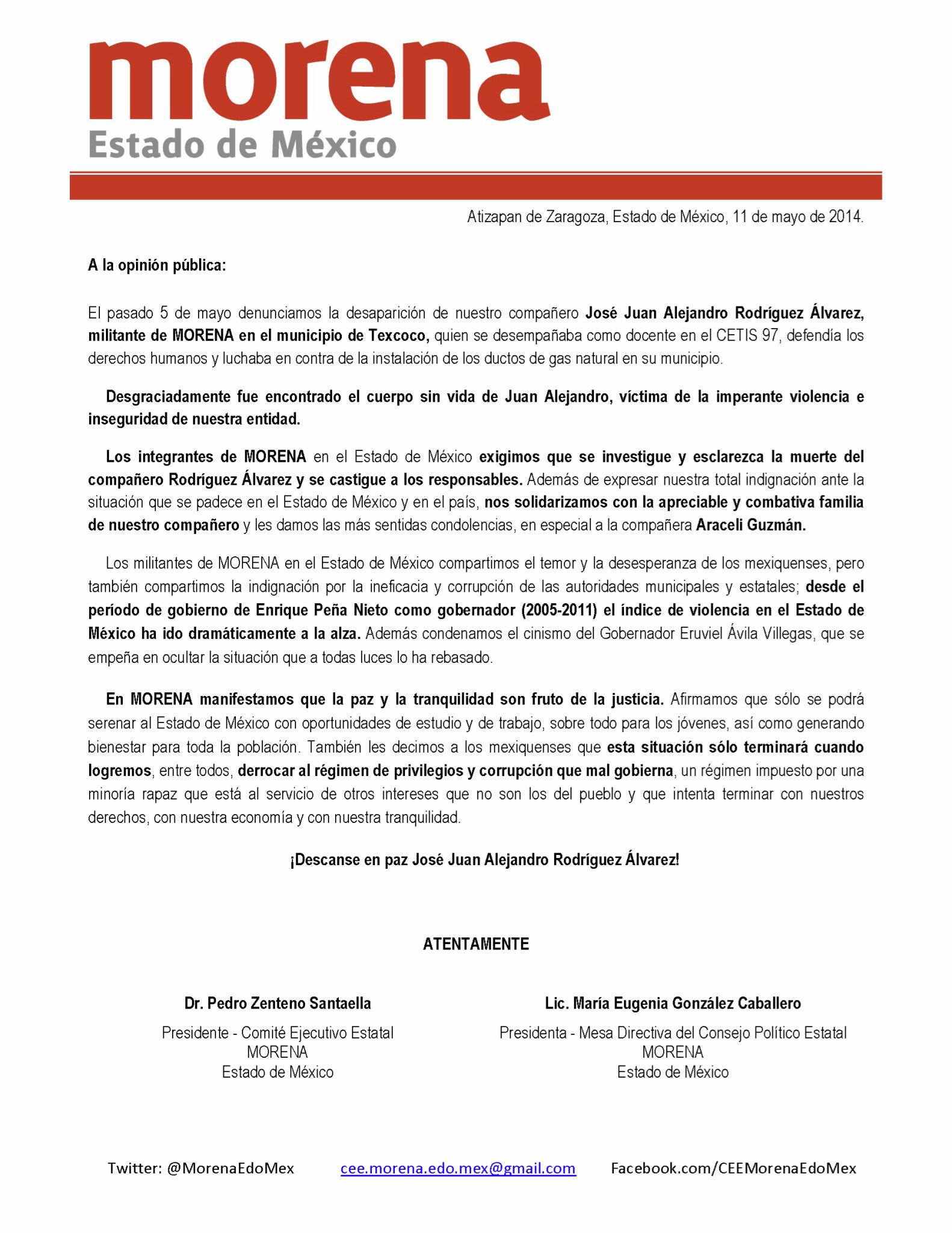 #Morena Estado de México sobre el asesinato de José Juan Rodríguez