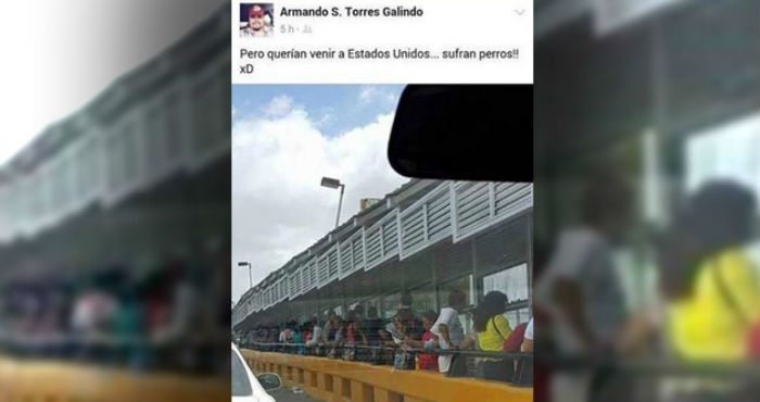 “Pero querían venir a Estados Unidos… sufran perros!!! xD”, publicó Armando S. Torres Galindo en su cuenta de la red social. Foto: Facebook