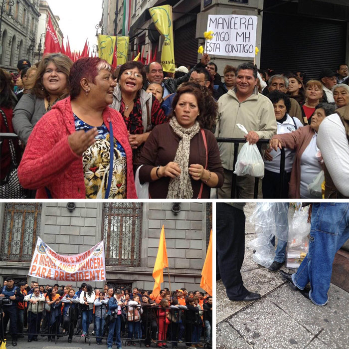 Como lo hizo la tarde del 15 de septiembre pasado el Partido Revolucionario Institucional (PRI), que trajo acarreados del Estado de México para simular apoyo en el Zócalo durante la ceremonia del Grito del Presidente Enrique Peña Nieto, así lo hizo el de la Revolución Democrática (PRD) para Miguel Ángel Mancera, Jefe de Gobierno del Distrito Federal.