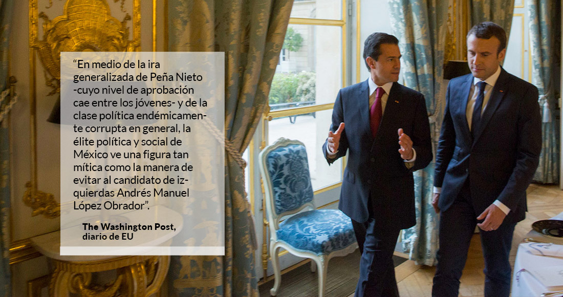 “De hecho, no menos de cinco candidatos presidenciales probables han sido nombrados el ‘Macron mexicano’, el hombre que supuestamente unirá al país, defenderse del populismo e imponer un gobierno pragmático y centrista. En medio de la ira generalizada de Peña Nieto -cuyo nivel de aprobación cae entre los jóvenes- y de la clase política endémicamente corrupta en general, la élite política y social de México ve una figura tan mítica como la manera de evitar al candidato de izquierdas Andrés Manuel López Obrador”, sostiene el texto firmado por David Agren.