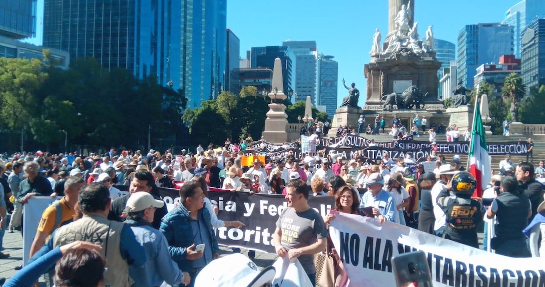 No a los virreyes estatales”, “Sí a la libertad de expresión”, “Sí a la división de poderes”, “AMLO ¿por que nos odias tanto?”, “Sufragio efectivo no reelección”, “Sí a una Fiscalía autónoma”, “No a la reforma del Artículo 35 constitucional”, son algunas de las consignas que se escuchan en la movilización.